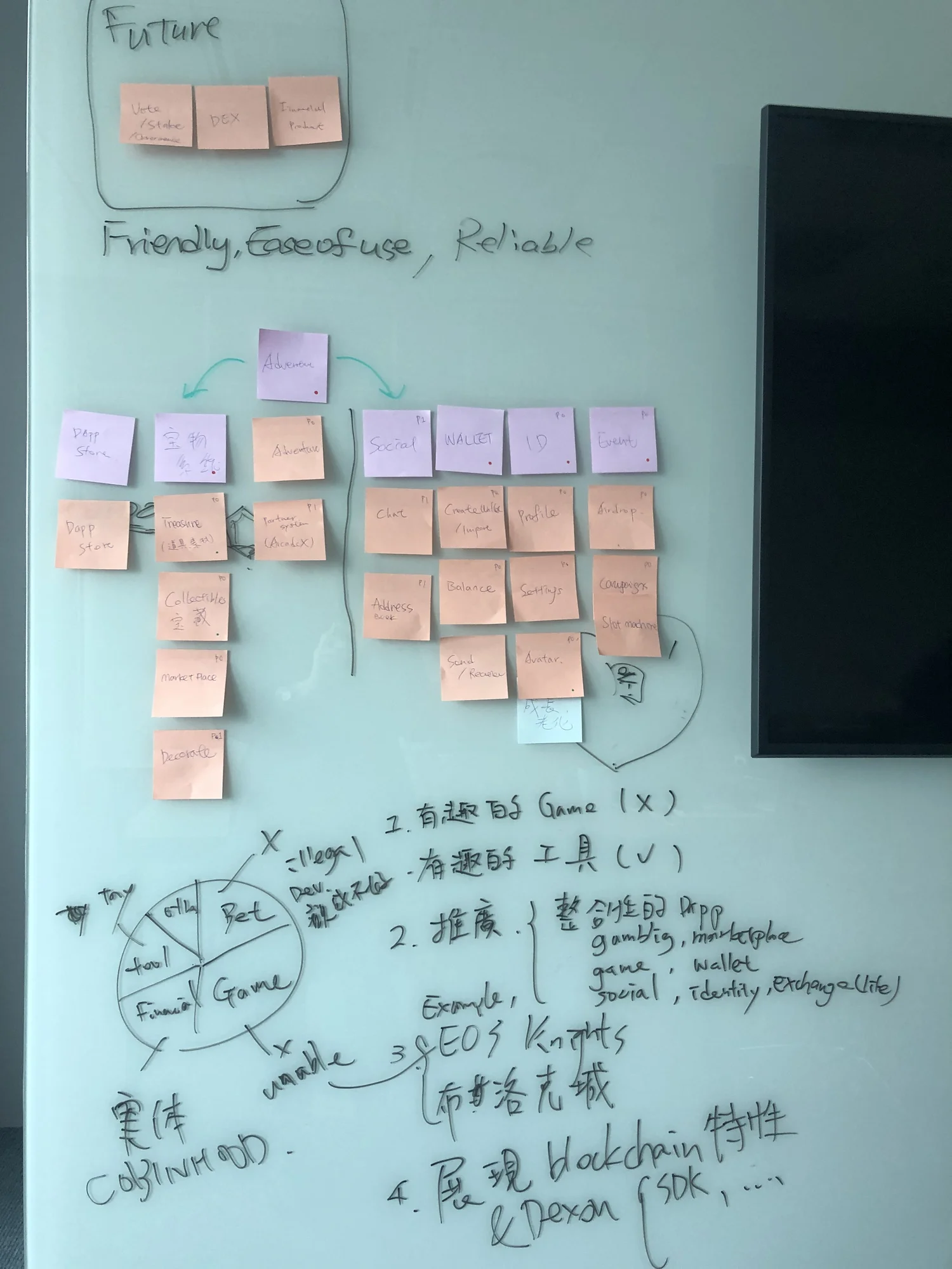 We converged on a clear direction: rather than a pure currency wallet, we'd build a DApp-first product with gaming and social elements - something users at any level could explore, not just hold tokens in.